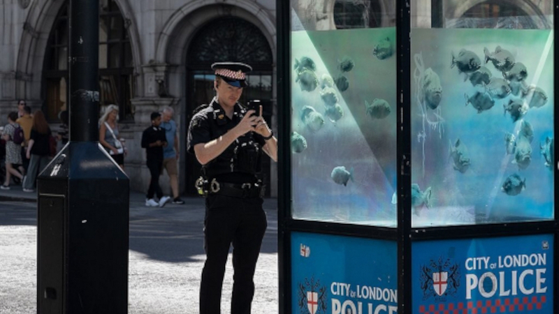 The big cat, “stretching out on the back of a dilapidated billboard,” was stashed for safety “by three men who said they had been hired to take it down.” The piranhas were “removed from near the Old Bailey courthouse to the City of London corporate offices to protect it, a spokesperson said. It will eventually be placed where it can be viewed by the public.”